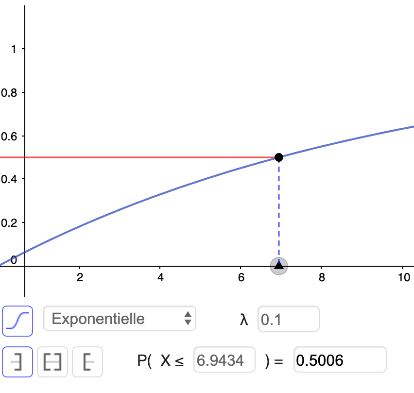 La fonction de rĆ©partition d'une variable alĆ©atoire Xā¼E(Ī») est donnĆ©e par : F:tā¦P(X⩽t)=1āeāĪ»t